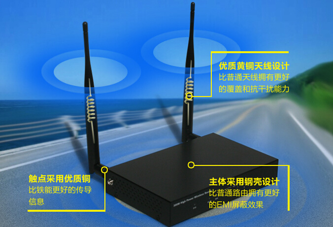 如今无线WiFi随处可见,遇到障碍物阻隔怎么办?信号太弱怎么办?一个办公室,在角落里没信号怎么办?增加无线路由器或者无线AP的数量无非是给众多用户增加经济上的压力,增大发送功率,增大天线增益无非是唯一的解决方法,SeaPai仕牌SP-WR300-HP采用大功率,高增益天线,让无线信号对墙体视而不见。