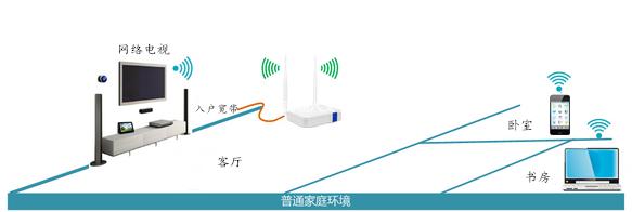 无线信号强的区域进行中继,将信号扩展到信号较弱的角落,如下: