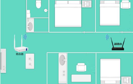 添购一个无线路由器,将两台路由进行桥接,即可将信号覆盖范围扩展,如下: